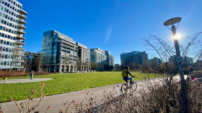 吃完Kraft,走上水邊的岩石,一小圈,再走上洞洞的鐵板行人步橋;下午二時,這單身貴族區的大草坪旁,溫煦的太陽好像拔掉身上所有的病痛,腳踏車無聲無息地經過,走過的路人也都不帶任何的敵意,這裡什麼族裔都有,有包頭巾的,有華人帶著老人者,為什麼每一個人都乾乾淨淨的,被陽光照的非常精緻。