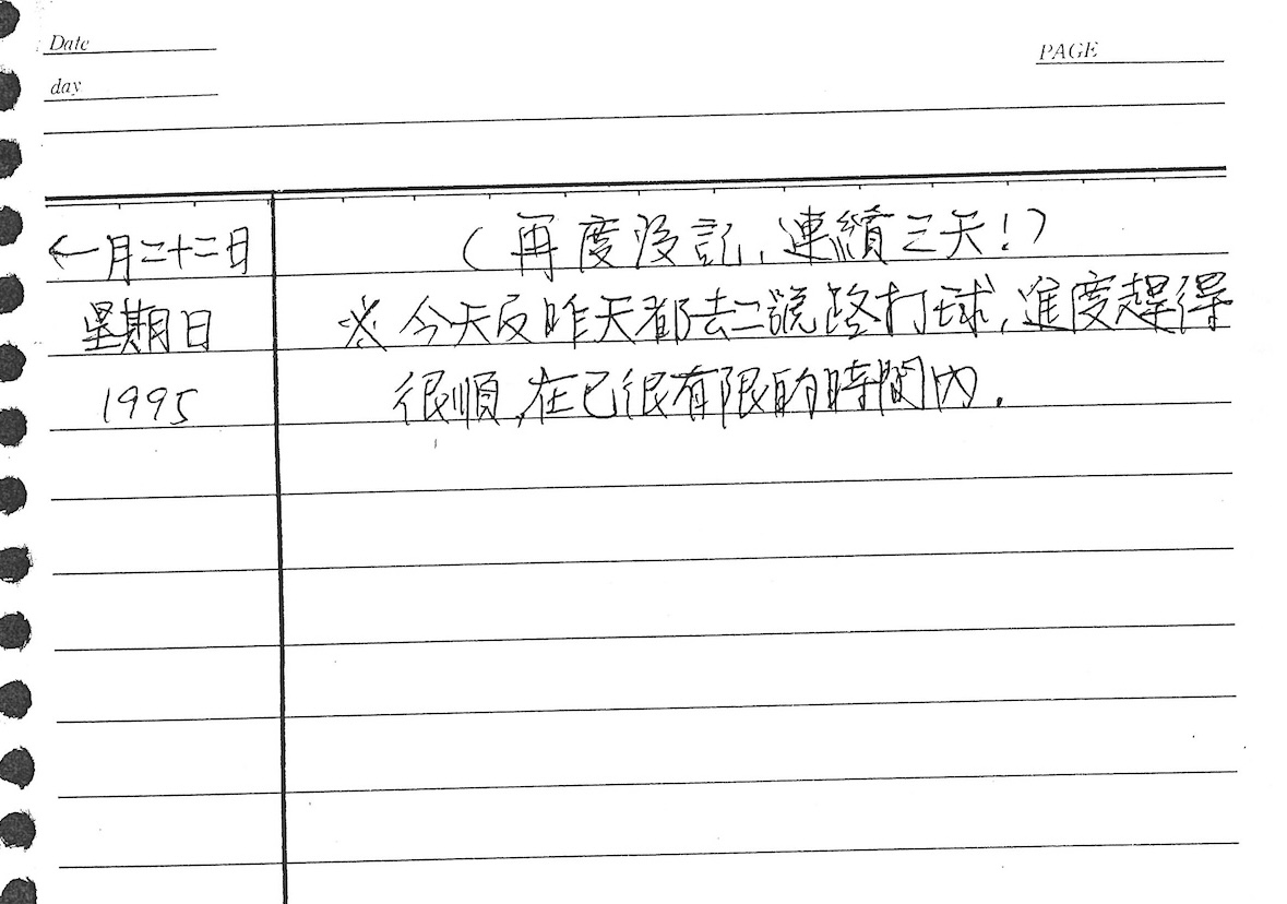以下是30年前的今天(1995年1月22日)當時18歲的我所親筆寫下的日記: