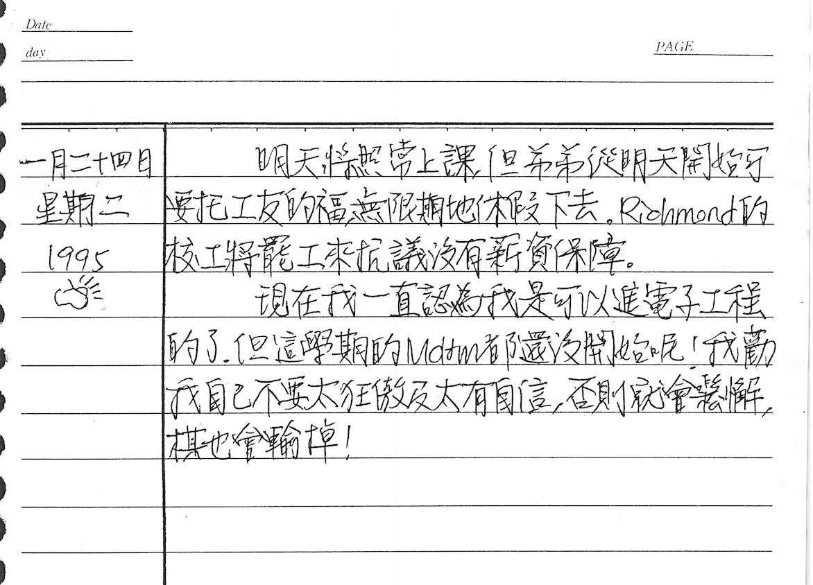 以下是30年前的今天(1995年1月24日)當時18歲的我所親筆寫下的日記: