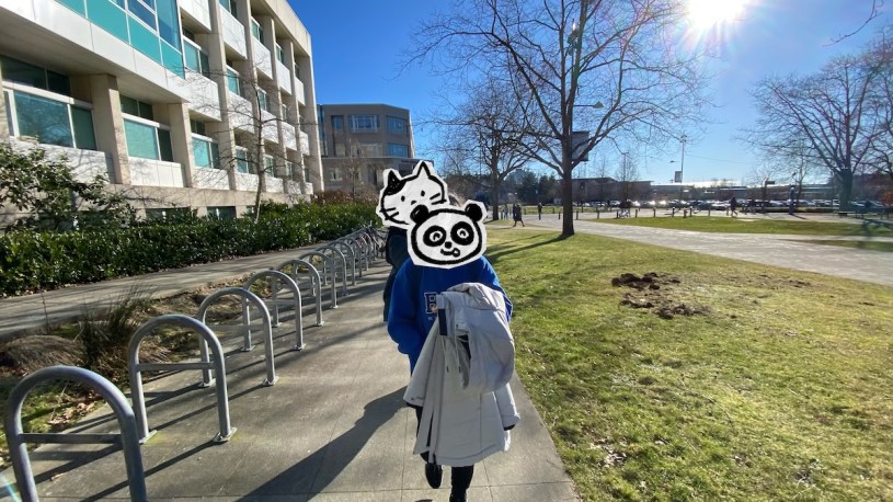 今天難得,孩子們願意來UBC,今天是他們新舊學期轉換,放假一天,UBC沒放假,所以可以看到學生上課的模樣。我載兩個孩子蹭著晴朗之冬,一樣的枯木,一樣滿地綠油油的草,經過了溫哥華西區,進入此刻如同夢境畫面的UBC校園,非常非常的棒,我懷疑,夏天真仍會這麼舒服嗎?或許這麼難得晴朗的冬日,也就是最近兩星期,是溫哥華幾年來最宜人的記錄──陽光再強也不熱,身上是軟綿綿的帽T,也不冷。