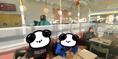住宅區旁的學生義麵館,二訪拉貴森寫作業,二孩高效率也高滿足。手機錄自己12分鐘口說特具磁性