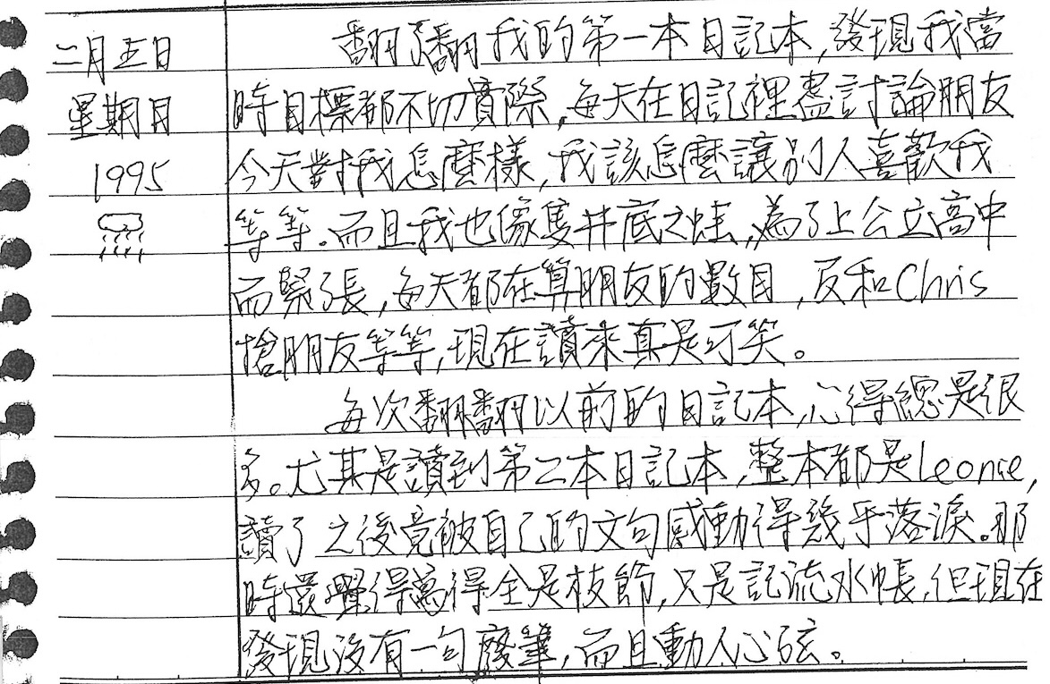 以下是30年前的今天(1995年2月5日)當時18歲的我所親筆寫下的日記: