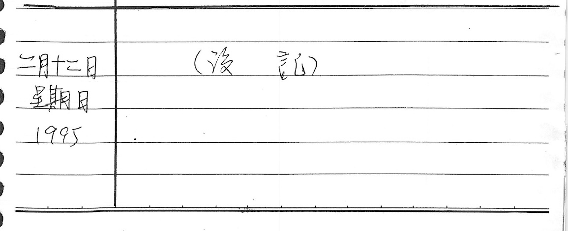 以下是30年前的今天(1995年2月12日)當時18歲的我所親筆寫下的日記: