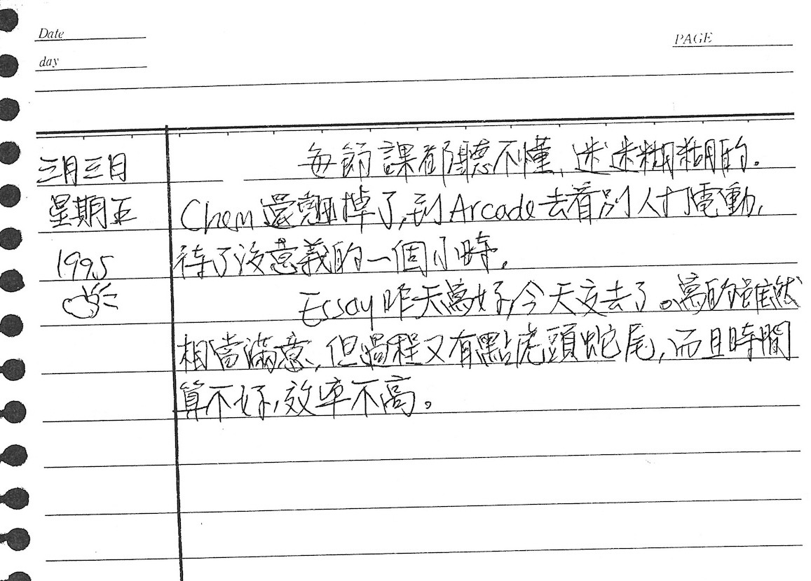 以下是30年前的今天(1995年3月3日)當時18歲的我所親筆寫下的日記: