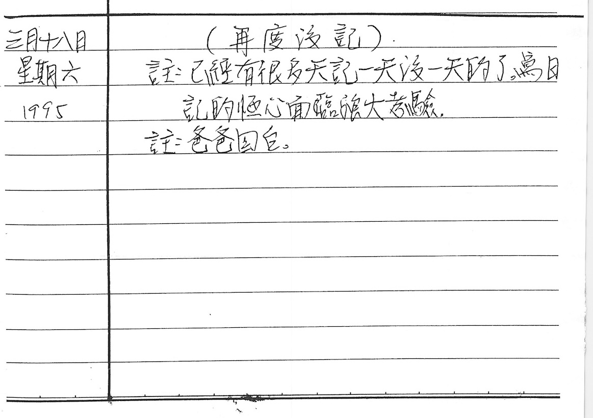 以下是30年前的今天(1995年3月18日)當時18歲的我所親筆寫下的日記: