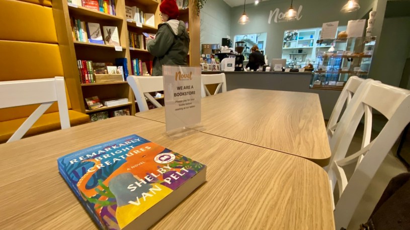 孩子堅持在家,好隊友想走走,來Deep Cove,雨天,水灣很漂亮,看到類似升降車的,熟悉畫面果然,一個人穿著filming liaison的正在和警察溝通,他們封了一家餐廳,全是拍片的各種助理,不知道明星在哪;我們問兩個年輕人,你們在拍什麼啊?他們都好和善的回,說了一個奇怪的名字「Remarkable Bright Creatures」,還說旁邊書店有賣!