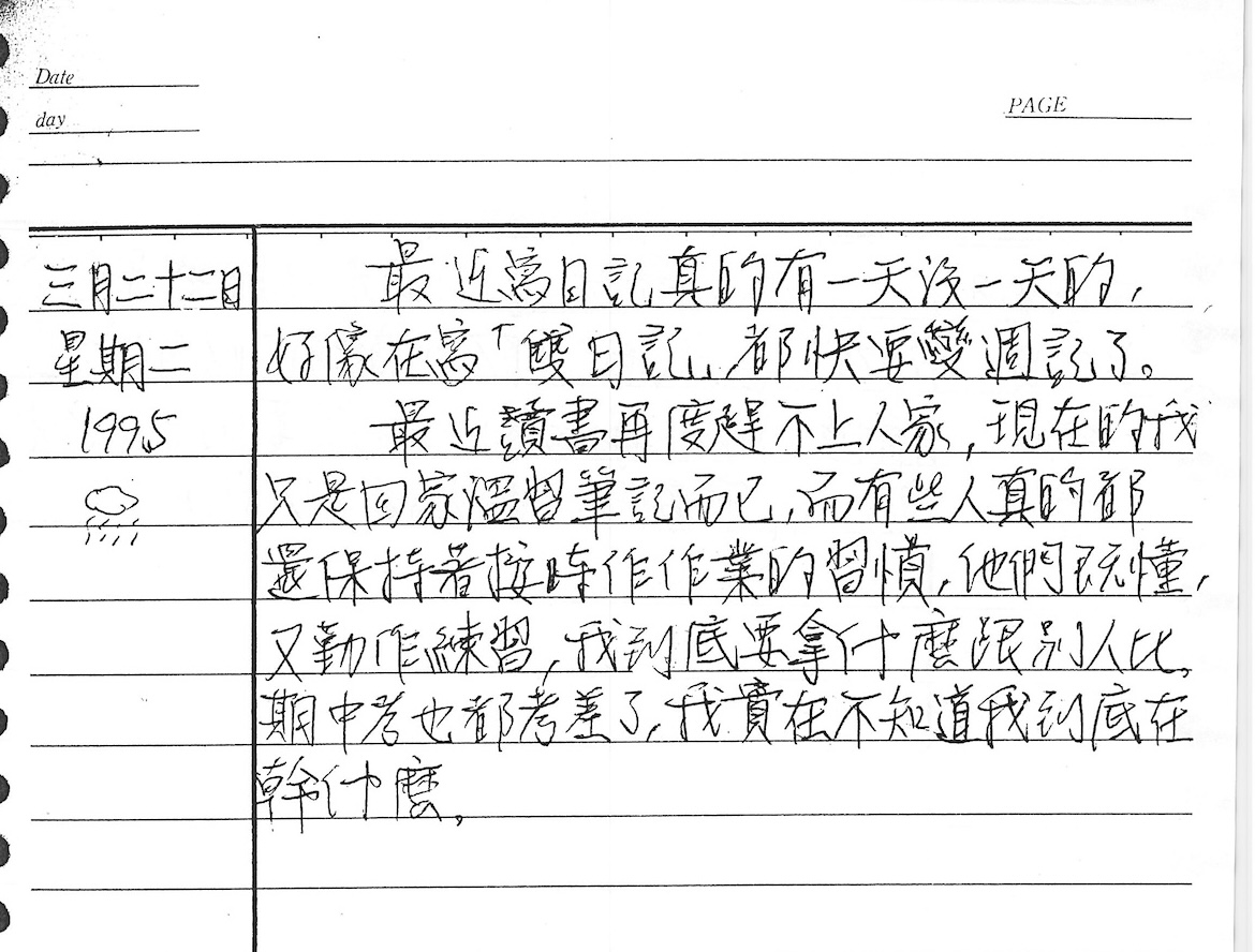 以下是30年前的今天(1995年3月21日)當時18歲的我所親筆寫下的日記: