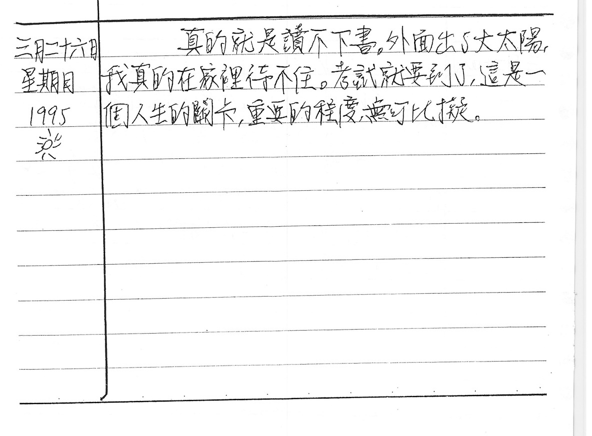 以下是30年前的今天(1995年3月26日)當時18歲的我所親筆寫下的日記: