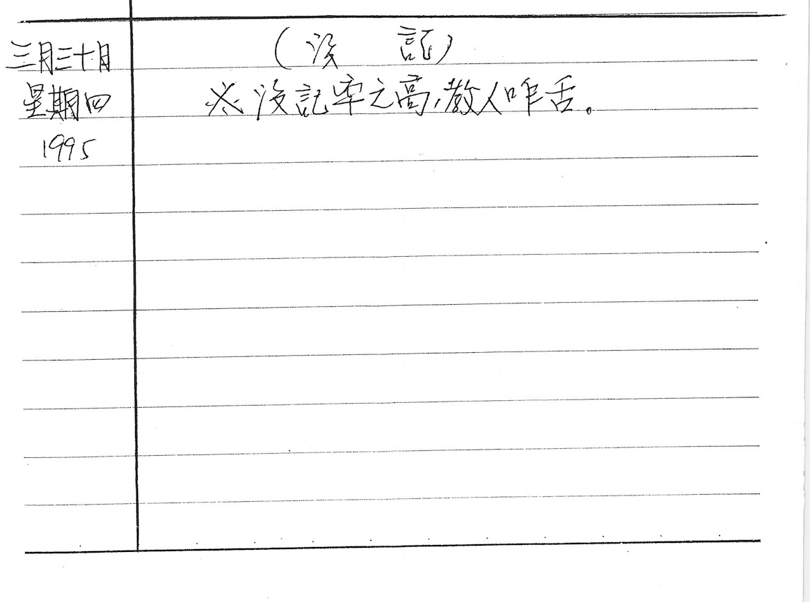 以下是30年前的今天(1995年3月30日)當時18歲的我所親筆寫下的日記: