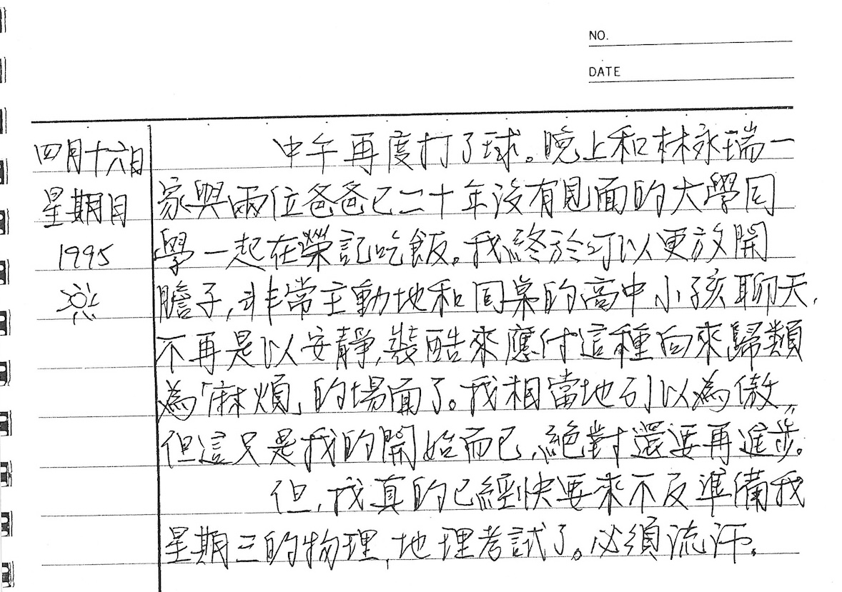 以下是30年前的今天(1995年4月16日)當時18歲的我所親筆寫下的日記: