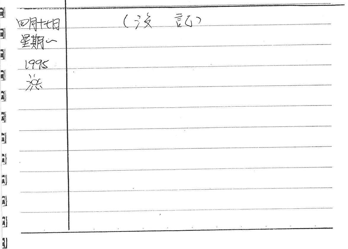 以下是30年前的今天(1995年4月17日)當時18歲的我所親筆寫下的日記: