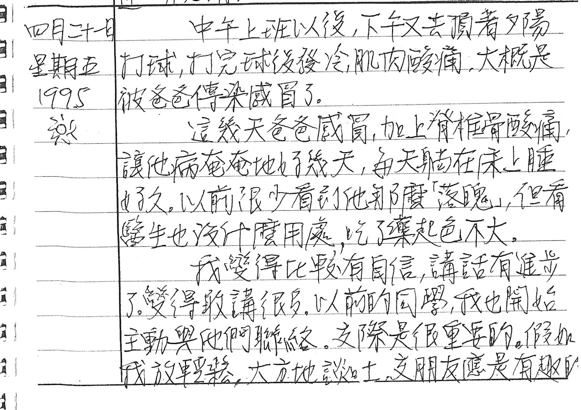 以下是30年前的今天(1995年4月21日)當時18歲的我所親筆寫下的日記: