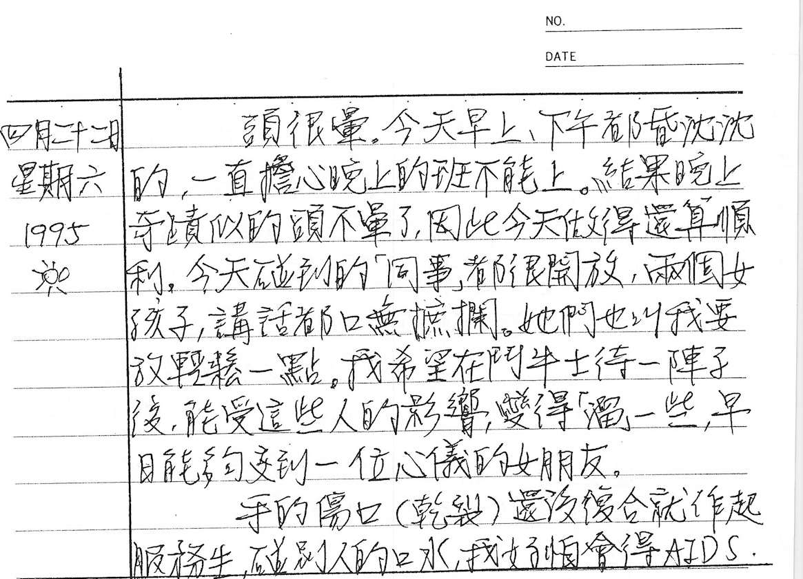 以下是30年前的今天(1995年4月22日)當時18歲的我所親筆寫下的日記: