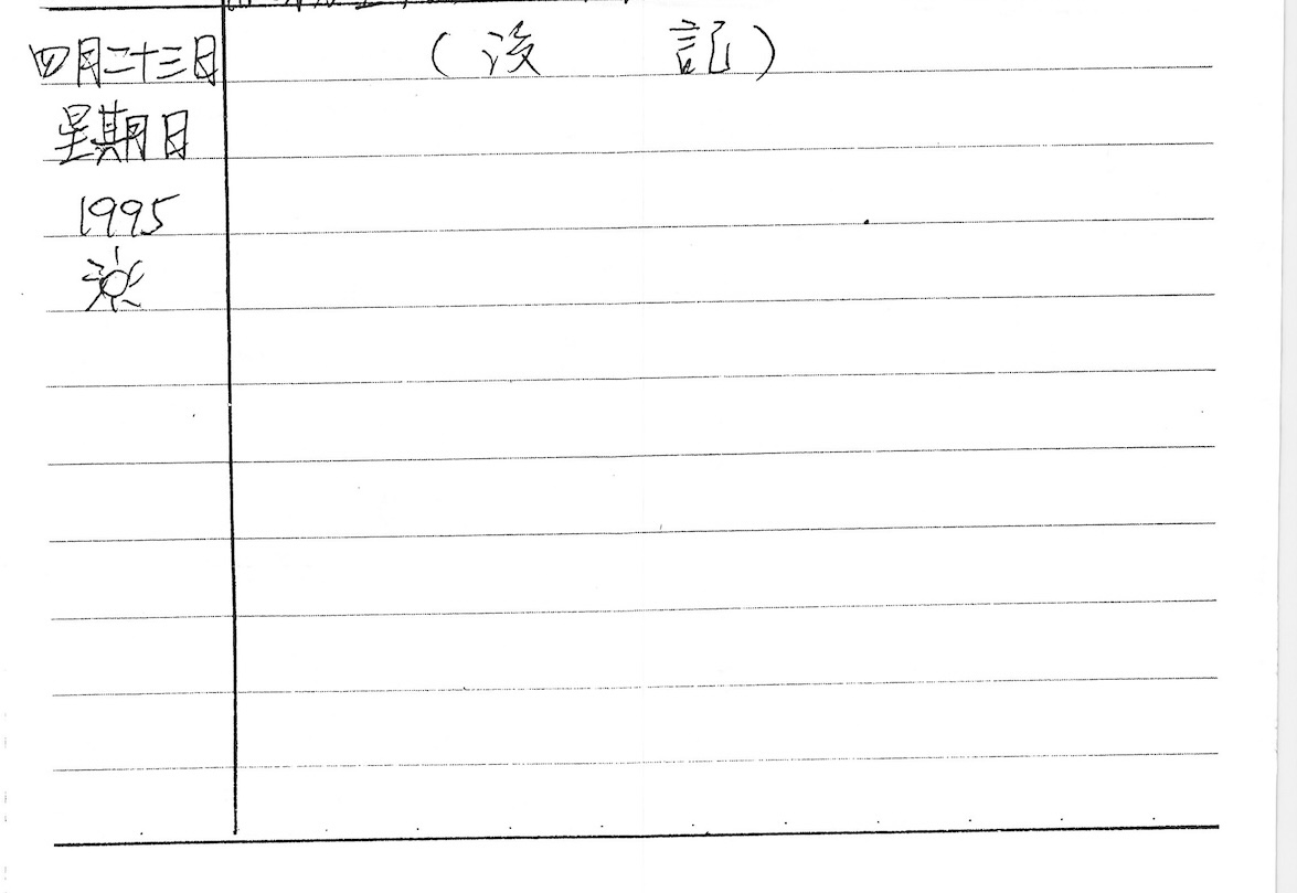 以下是30年前的今天(1995年4月23日)當時18歲的我所親筆寫下的日記: