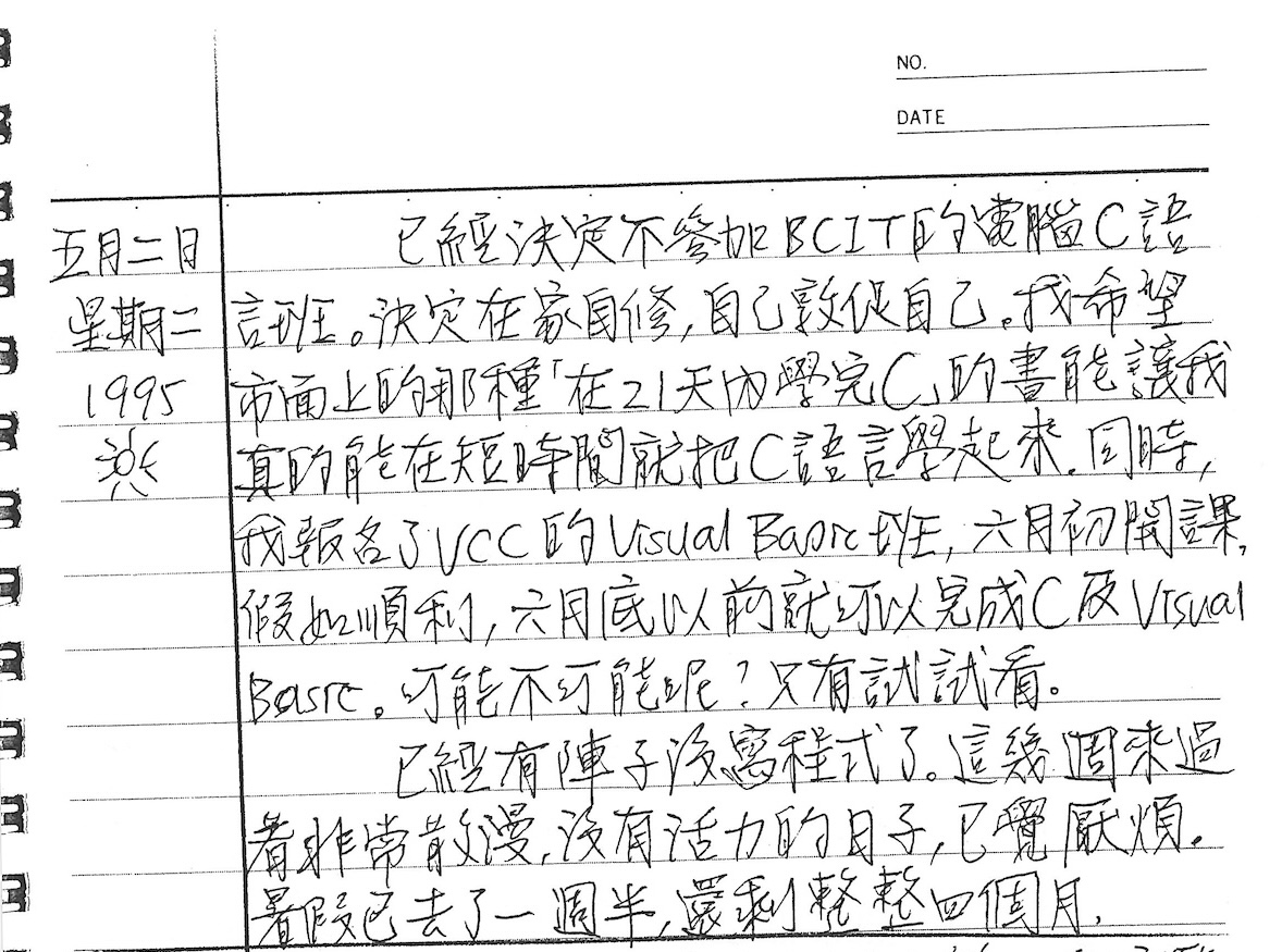 以下是30年前的今天(1995年5月2日)當時18歲的我所親筆寫下的日記: