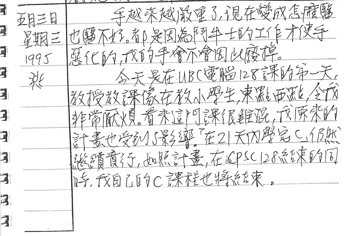 以下是30年前的今天(1995年5月3日)當時18歲的我所親筆寫下的日記: