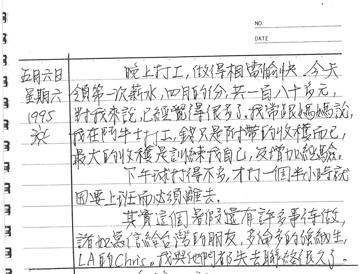 以下是30年前的今天(1995年5月6日)當時18歲的我所親筆寫下的日記: