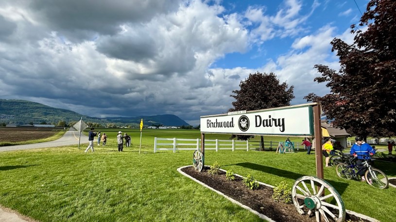 下個景點是Birchwood Dairy,眼睛所及到地平線的底都是農場,最遠方又被綠色的山巒包住,有個對照,好隊友說這裡和雲南沙溪很像。叫了三球冰淇淋最划算,原本一球7元變成三球9元而已,四人一起吃。