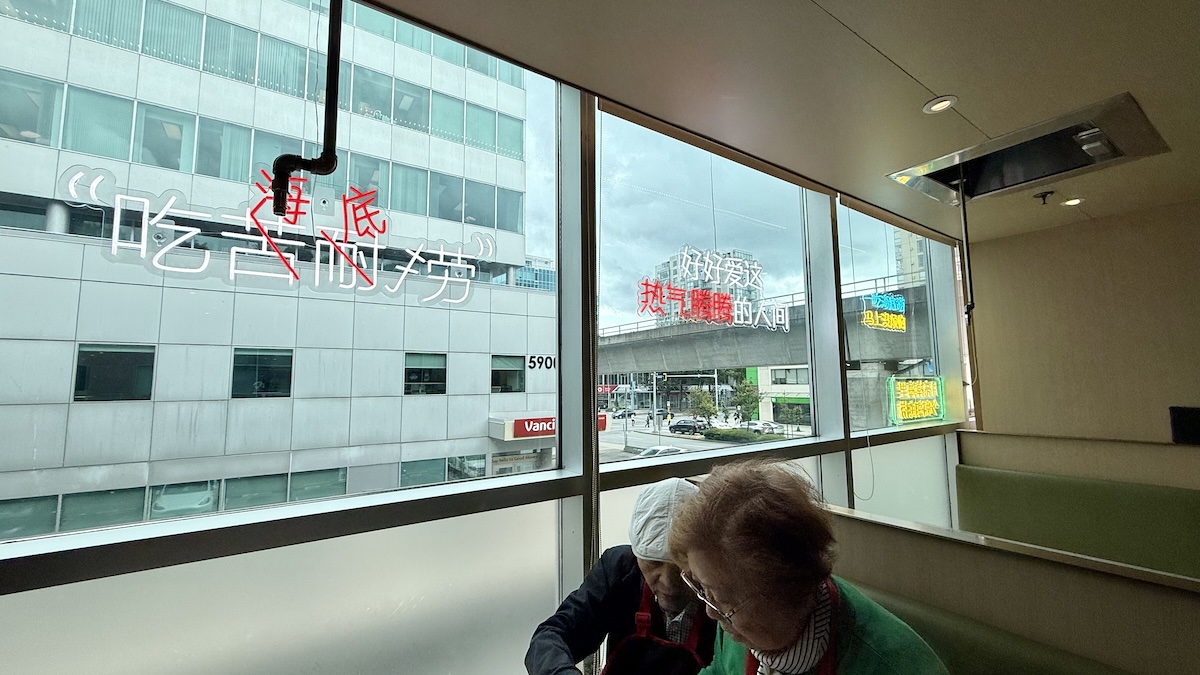 我們坐進海底撈大約兩點,吃到下午三點半,妹妹竟為了省錢說她不吃Salad Bar,於是她也沒有醬,她OK。四塊火鍋有兩塊是辣的,我們點了大約150元以內,媽媽突然說希望再多點,於是我們將剛剛吃過的魚、豆腐、魚豆腐、肉都各再點了一份,於是總共是200元,和兩年前除夕夜來吃的價錢差不多。