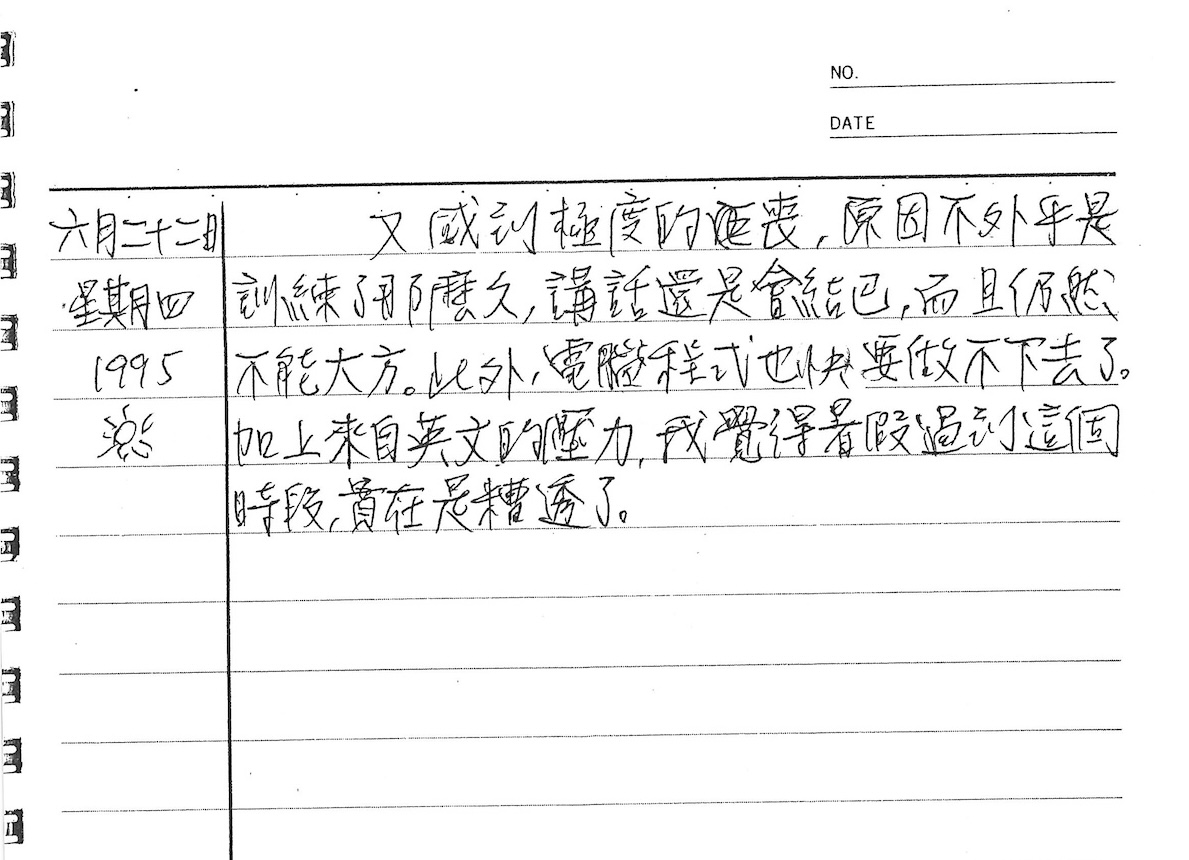 以下是30年前的今天(1995年6月22日)當時18歲的我所親筆寫下的日記: