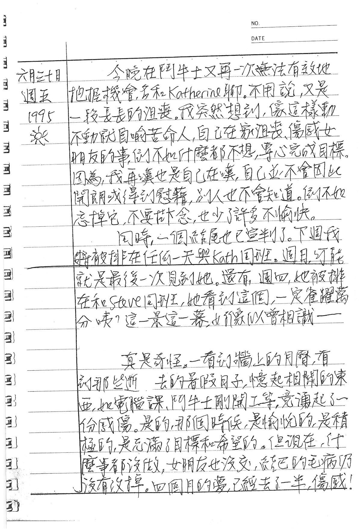以下是30年前的今天(1995年6月30日)當時18歲的我所親筆寫下的日記: