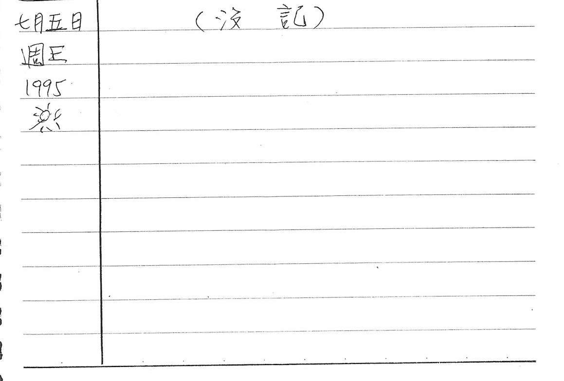 以下是30年前的今天(1995年7月5日)當時18歲的我所親筆寫下的日記: