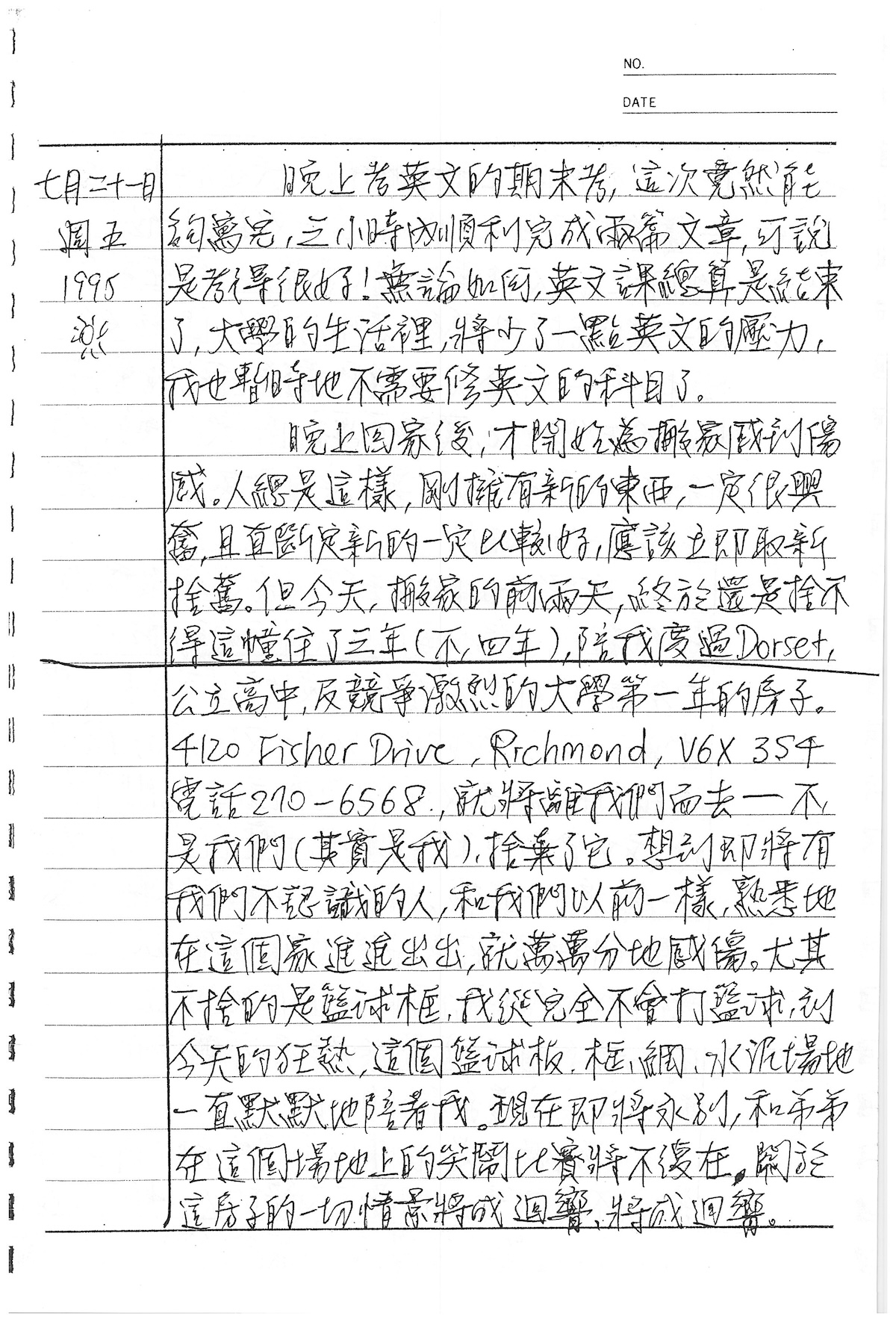 以下是30年前的今天(1995年7月21日)當時18歲的我所親筆寫下的日記: