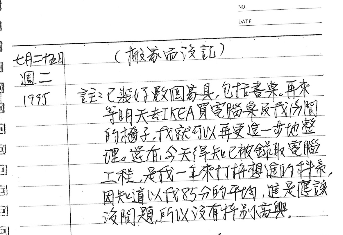 以下是30年前的今天(1995年7月25日)當時18歲的我所親筆寫下的日記: