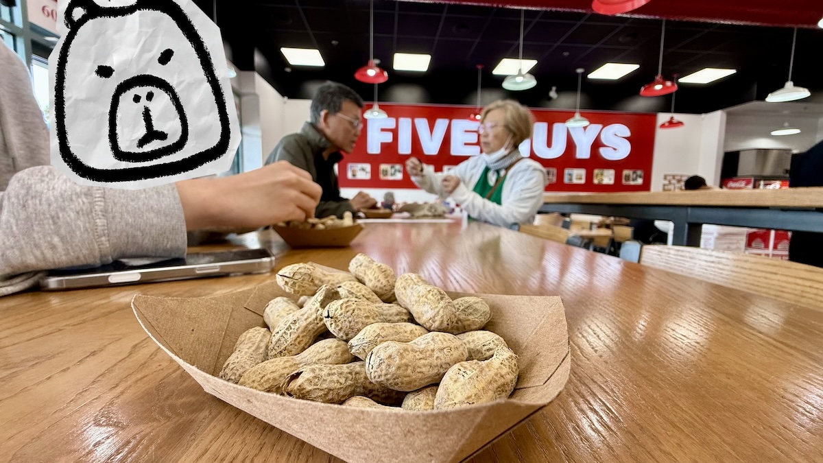 今日行程,近中午帶妹妹回家後,即出發送哥哥去上個月早先買好的「Fantastic Four」的IMAX電影,他怕被爆雷,所以總是第一天就看,但我和妹妹不去,把位子讓給孩子們的奶奶、爺爺,我們先到Five Guys趕吃午餐,讓爸媽又嘗試了一家新的食館,爸爸對吃到飽的花生,讚賞有加。