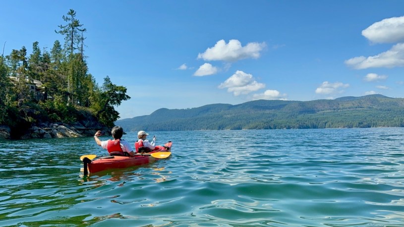謝謝弟弟選了這地方,我們加入的一家Lamb Bay附近叫Padddles & Paddles的,早上就出海划獨木舟,風景很好,沿海岸,最漂亮是小島,第一個島上有些民宿木屋,都是完整的家,後面第二個島旁有海豹,水面探頭出來,岸邊曬太陽,打架,繞回來有一個非常小的島是獨立的,上面有自己的房子。