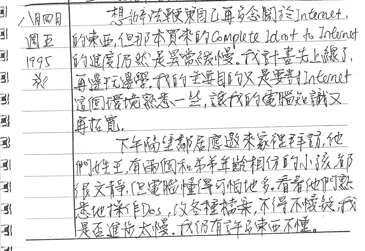 以下是30年前的今天(1995年8月4日)當時18歲的我所親筆寫下的日記: