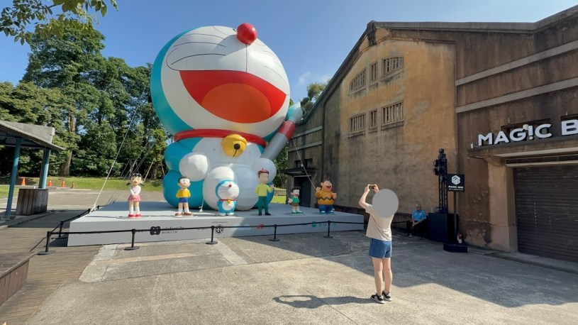 提早在華山拍照那隻超巨大哆拉A夢和排隊,9:35左右和其他幾個人開始排哆展,我們排第三組,第一組是自己來的年輕小姐姐,第二組是一對年輕女性朋友,我們後面則是一家有兩個小女孩的爸媽四人組。我正準備幫他們拍照,剛好說要進去了,10:20我們已拍了一些,不能錄影,妹妹很高興因為這裡提到的哆拉A夢所有的日本漫畫她都有收集,放在溫哥華她房間且還有新買小窗簾保護著防塵。