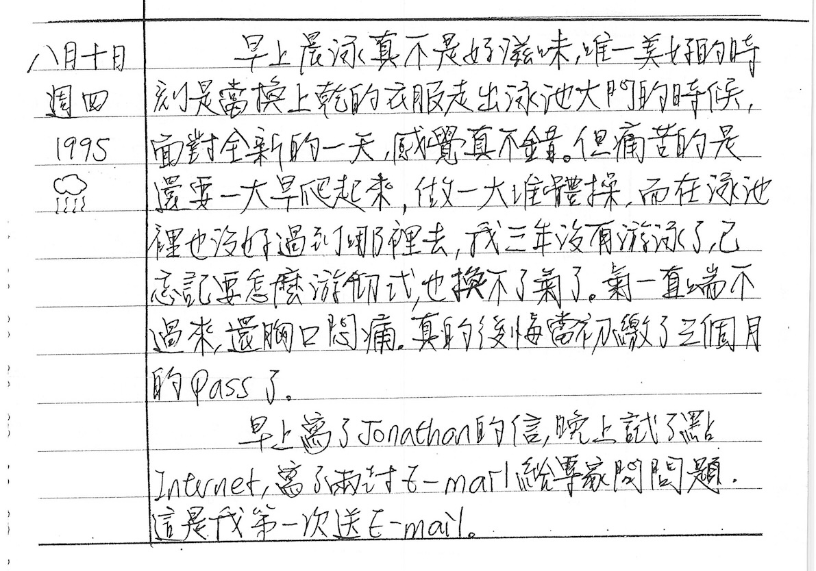 以下是30年前的今天(1995年8月10日)當時18歲的我所親筆寫下的日記: