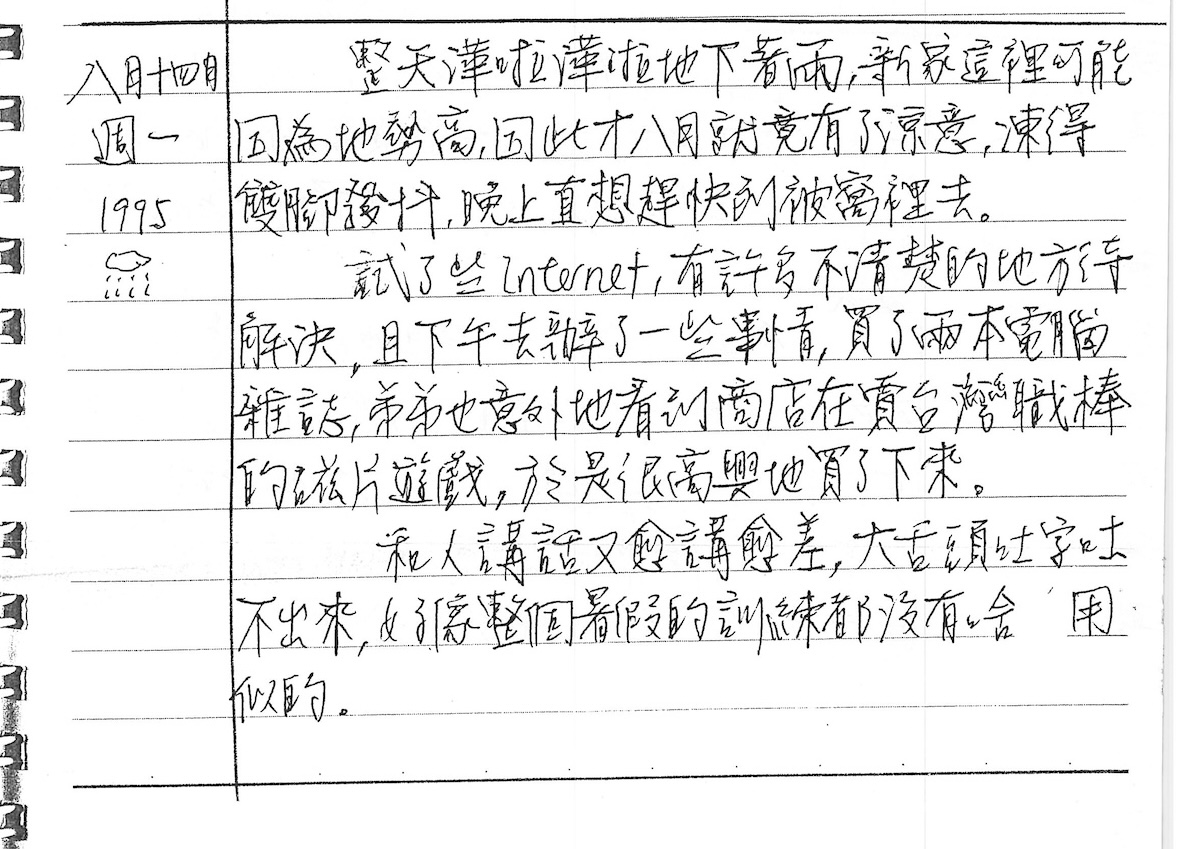 以下是30年前的今天(1995年8月14日)當時18歲的我所親筆寫下的日記: