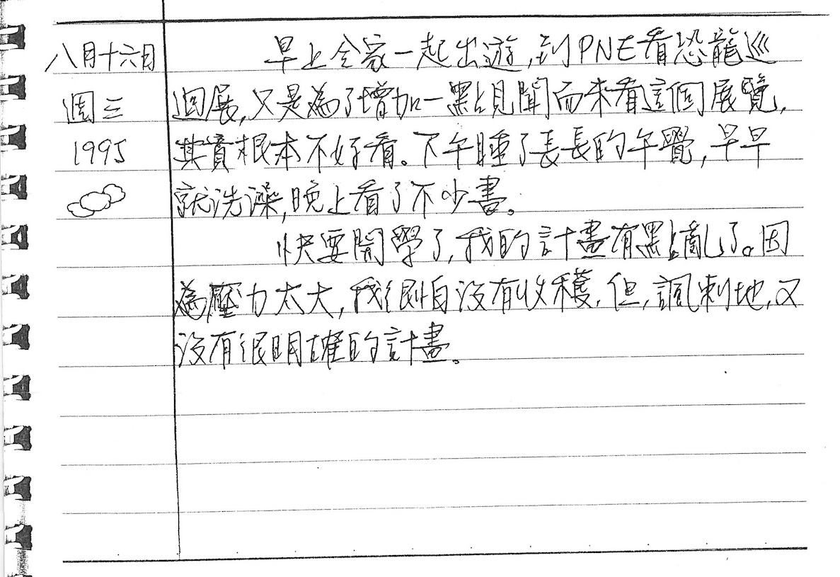 以下是30年前的今天(1995年8月16日)當時18歲的我所親筆寫下的日記: