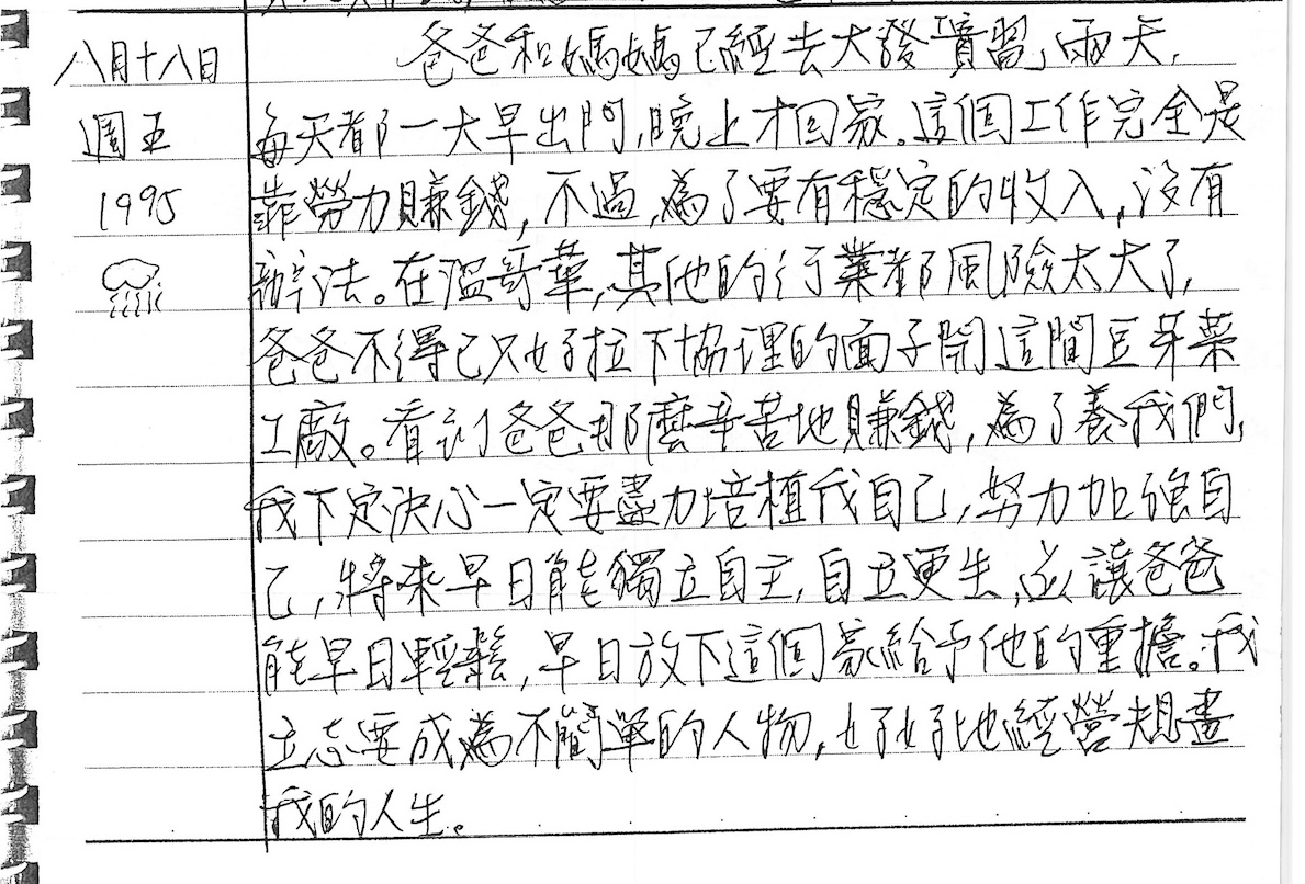 以下是30年前的今天(1995年8月18日)當時18歲的我所親筆寫下的日記: