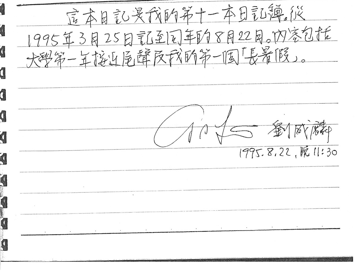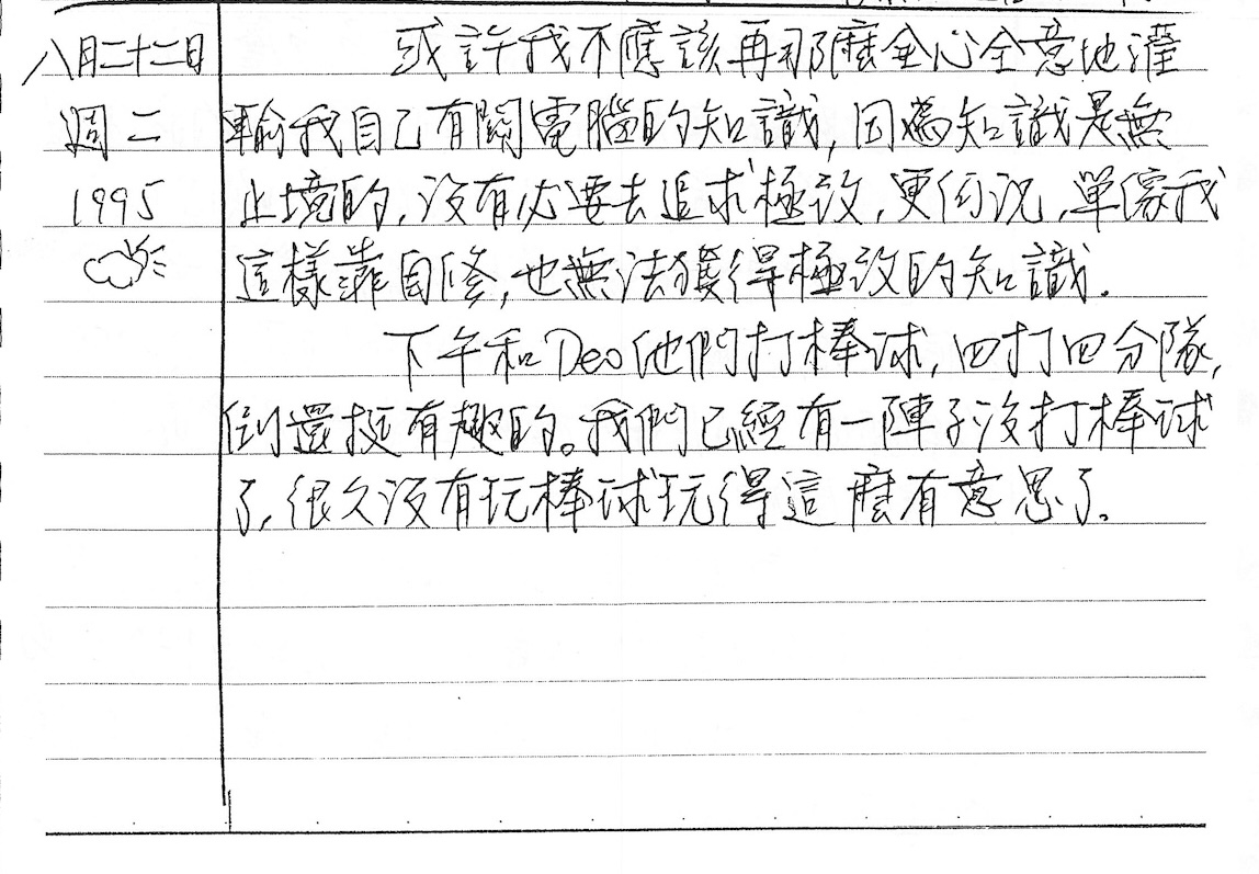 以下是30年前的今天(1995年8月22日)當時18歲的我所親筆寫下的日記: