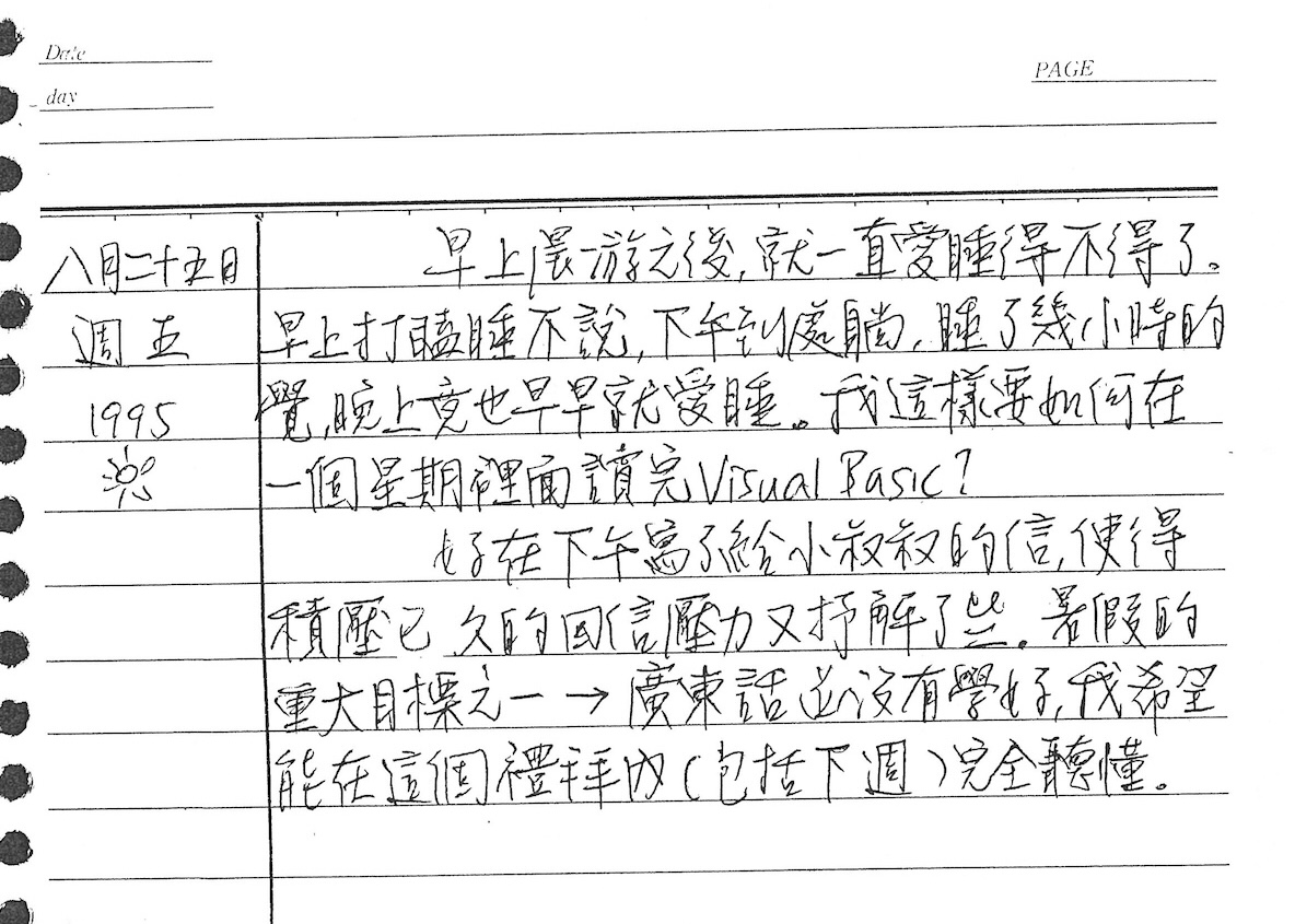 以下是30年前的今天(1995年8月25日)當時18歲的我所親筆寫下的日記: