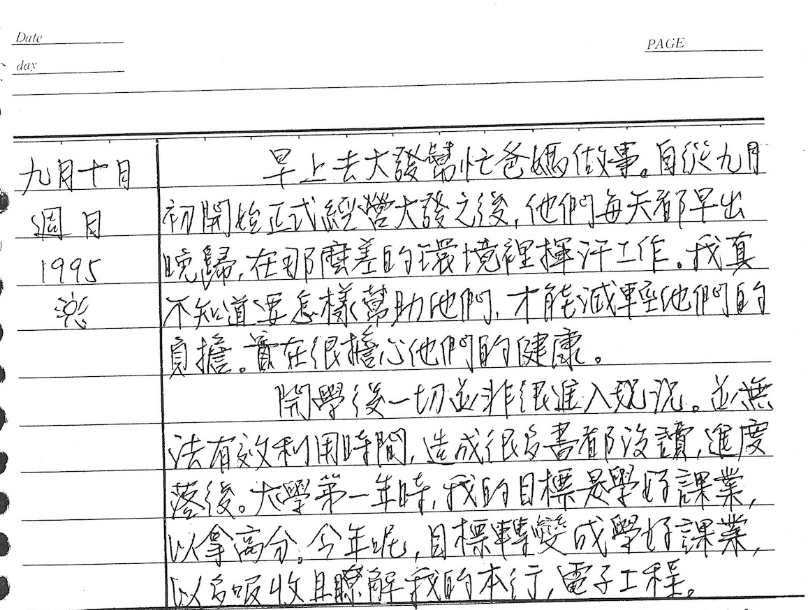 以下是30年前的今天(1995年9月10日)當時18歲的我所親筆寫下的日記: