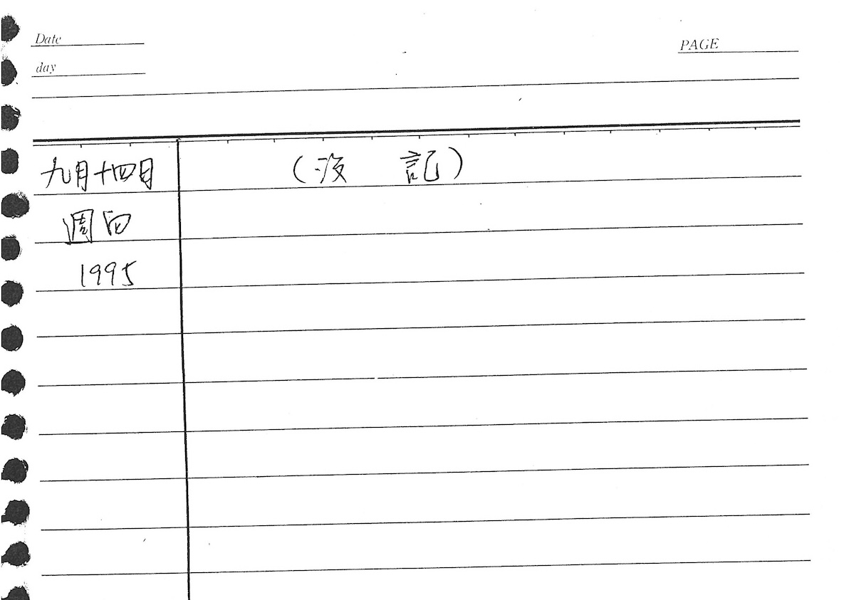 以下是30年前的今天(1995年9月14日)當時18歲的我所親筆寫下的日記:
