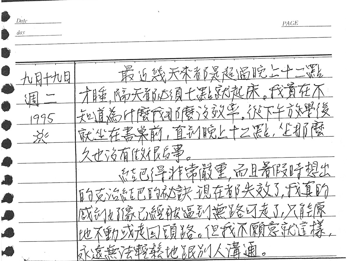 以下是30年前的今天(1995年9月19日)當時18歲的我所親筆寫下的日記: