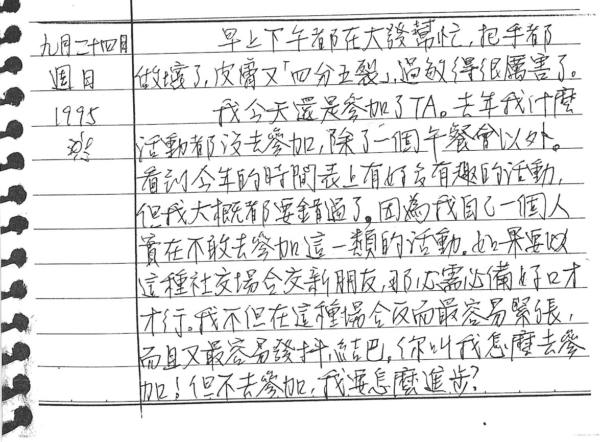 以下是30年前的今天(1995年9月24日)當時18歲的我所親筆寫下的日記: