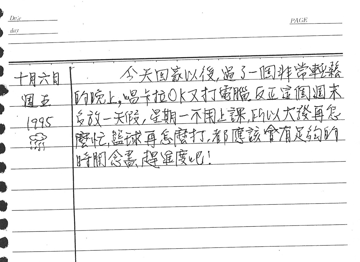 以下是30年前的今天(1995年10月6日)當時18歲的我所親筆寫下的日記:
