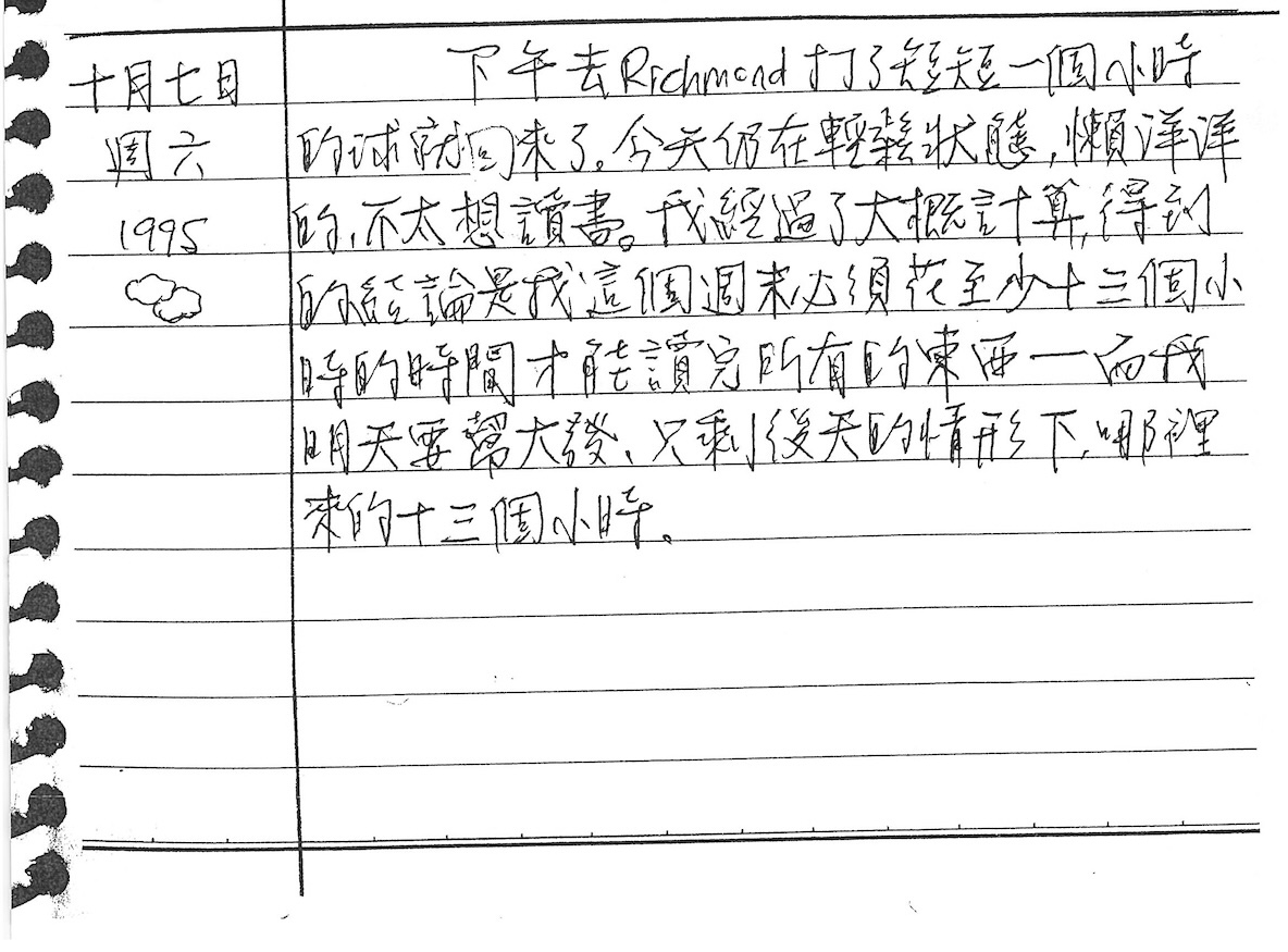 以下是30年前的今天(1995年10月7日)當時18歲的我所親筆寫下的日記: