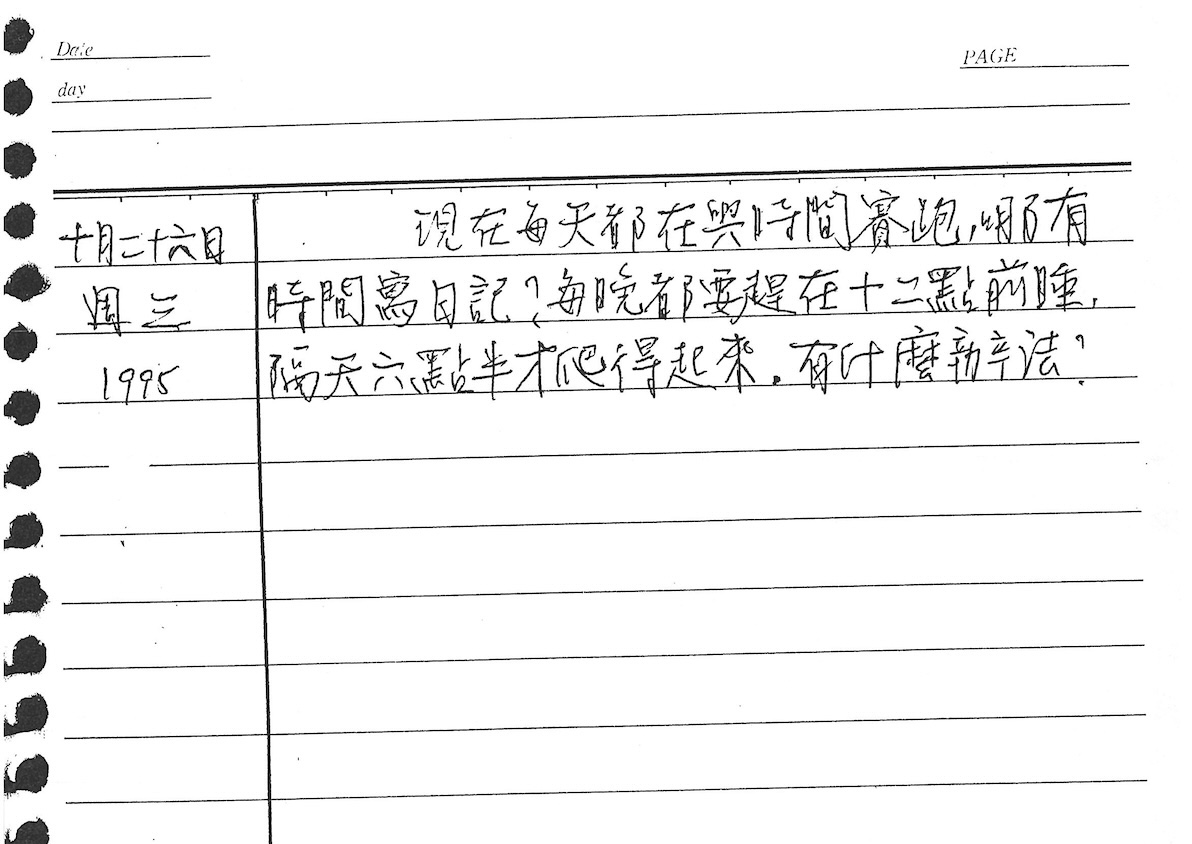 以下是30年前的今天(1995年10月26日)當時18歲的我所親筆寫下的日記:
