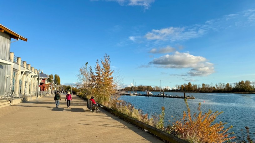 回顧今天行程,可說是充份的利用了住溫哥華、在這裡工作兼活著的最美好一面。早上我坐IKEA後,來Steveston漁港的Rocanini咖啡廳、在大玻璃旁工作,然後與好隊友到旁邊河畔走了一段來回,吸收陽光,眼睛也飽賞美麗水景,看看在水邊釣魚與賞景的其他人類,再回家吃晚餐。今天工作得非常多,也把握所有空檔時間遊覽了人類世界最棒的景與境。