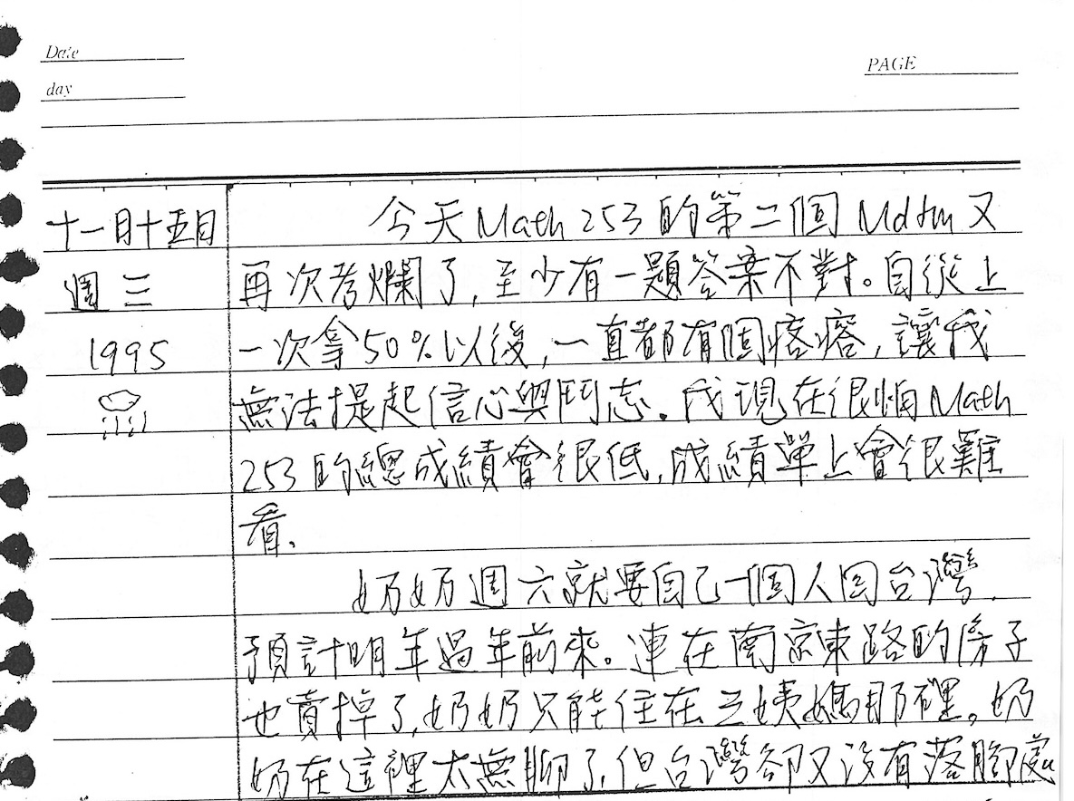 以下是30年前的今天(1995年11月15日)當時18歲的我所親筆寫下的日記: