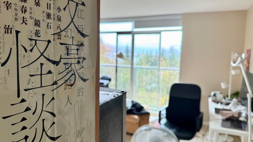 留妹妹在山上社區路邊,我上到四樓,有一陣子沒來小小威兒子的學區房,他說已經很髒很亂,我稱讚其實還好,不會啊;他還是玻璃窗大敞開,暖氣仍在跑動,有聲音,他說暖氣不是很暖、不太管用。