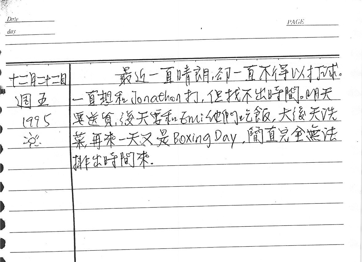 以下是30年前的今天(1995年12月22日)當時19歲的我所親筆寫下的日記: