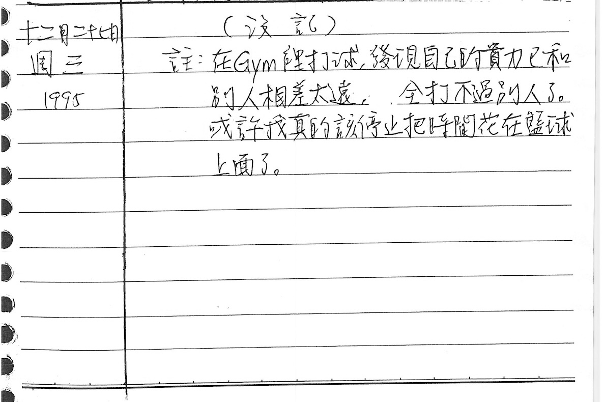 以下是30年前的今天(1995年12月27日)當時19歲的我所親筆寫下的日記: